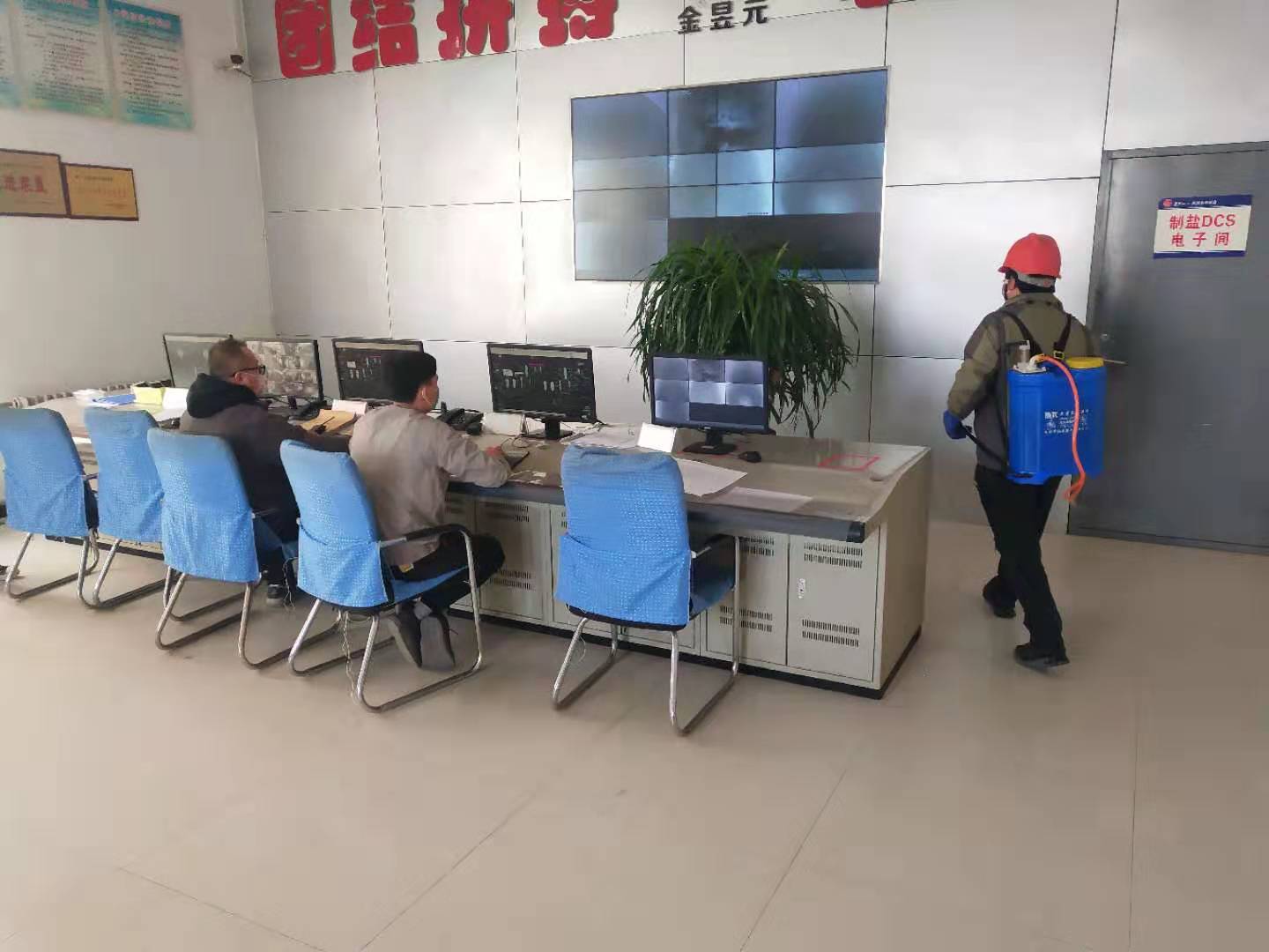8、各裝置、科每日分別于8-9時(shí)、14-15時(shí)、20-21時(shí)對辦公區(qū)域、主控室、值班室、操作場所、生產(chǎn)廠房等區(qū)域進(jìn)行消毒工作,并做好相關(guān)記錄。熱力裝置負(fù)責(zé)對進(jìn)入煤場路口鋪設(shè)草簾或棉質(zhì)墊子,安排人員每隔二小時(shí)向上噴灑消毒水,鹽硝裝置在小廣場護(hù)欄間路口鋪設(shè)草簾或棉質(zhì)墊子,安排人員每隔二小時(shí)向上噴灑消毒水,對進(jìn)廠車輛輪胎進(jìn)行消毒。