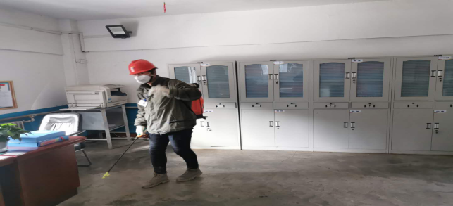 對(duì)廠區(qū)衛(wèi)生間消毒。