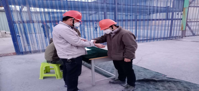 在園區南門,今日截止下午17時整,他們檢測、消毒、登記車輛112輛(其中水泥14車輛,熟料4車輛,液堿2車,鹽酸1車),人員119人信息,體溫均在正常范圍,另外隨行24人體溫均在正常范圍。