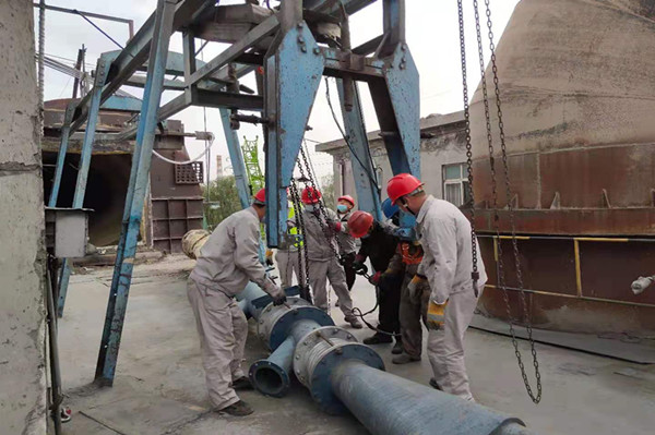 團隊是什么,是為了實現一個共同的目標而集合起來的人。 任何一個人的力量都是渺小的,只有融入團隊,只有與團隊一起奮斗,勁往一處使,你才能實現個人價值的最大化,你才能成就自己的卓越!伴隨副總經理一聲令下,所有人員喊著豪邁的口號,配合吊機的力臂推動著奇重無比的噴煤管一點一點的前行。又一會功夫將回轉窯門緩緩調至檢修現場安全的位置。