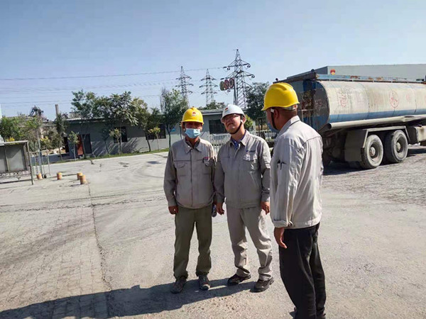 公司安全總監鄒永清、副總經理馬澤陪同專家組深入生產現場,對工藝流程、操作人員的勞動防護用品、設備運行情況向專家組逐一進行講解。