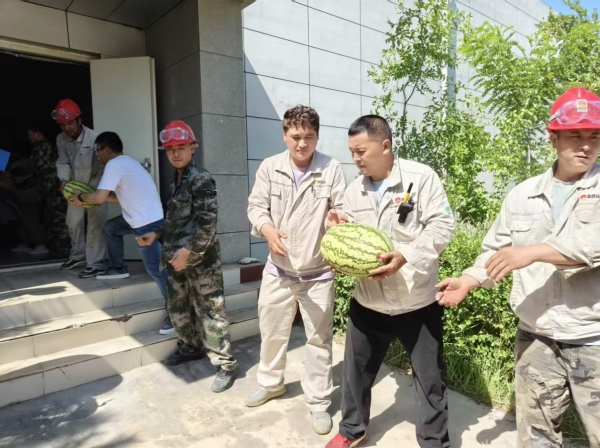 活動(dòng)期間,固原基地工會(huì)深入現(xiàn)場,將防暑西瓜分發(fā)到職工手中,為身處高溫工作環(huán)境的職工送去陣陣清涼。同時(shí)對奮戰(zhàn)在一線的職工致以親切問候,并囑咐大家做好高溫防護(hù),鼓勵(lì)大家在繁忙的工作中積極發(fā)揮勞模精神、工匠精神,為高溫季節(jié)安全生產(chǎn)保駕護(hù)航。