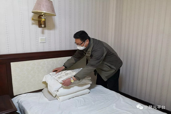 公司領導在辦公室搭鋪,財務、辦公人員居家網上辦公,克服流動資金緊張購置床具,騰出招待所、公寓樓安置員工。子公司黨支部書記唐亮、吳建明忙里忙外,摸排人員、安裝床具、整修暖氣,配置拖把、洗手液、飲用水、洗潔精等生活物資,設置留觀室、安排責任人,盡最大力量給員工留宿提供生活方便和疫情防控條件;固原片區黨支部書記王志杰、吳樹寧在人員入廠高峰期堅守檢查點,班中檢查崗位測溫執行情況,班后在宿舍給員工量體溫,封閉措施和疫情防控工作井井有條,共封閉員工3921人(固原片區2261人、青銅峽片區1598人、集團本部62人)。在員工住宿安排過程中,中國人民解放軍68216部隊得知我公司床具缺少的困難,伸出援助之手借用75套高低床緩解了困難,衷心感謝人民子弟兵。