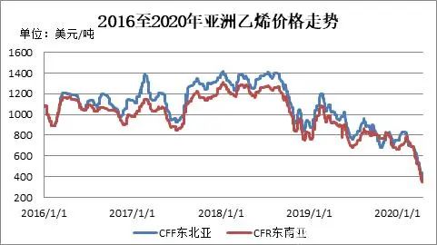 圖1 2016至2020年亞洲乙烯價(jià)格走勢