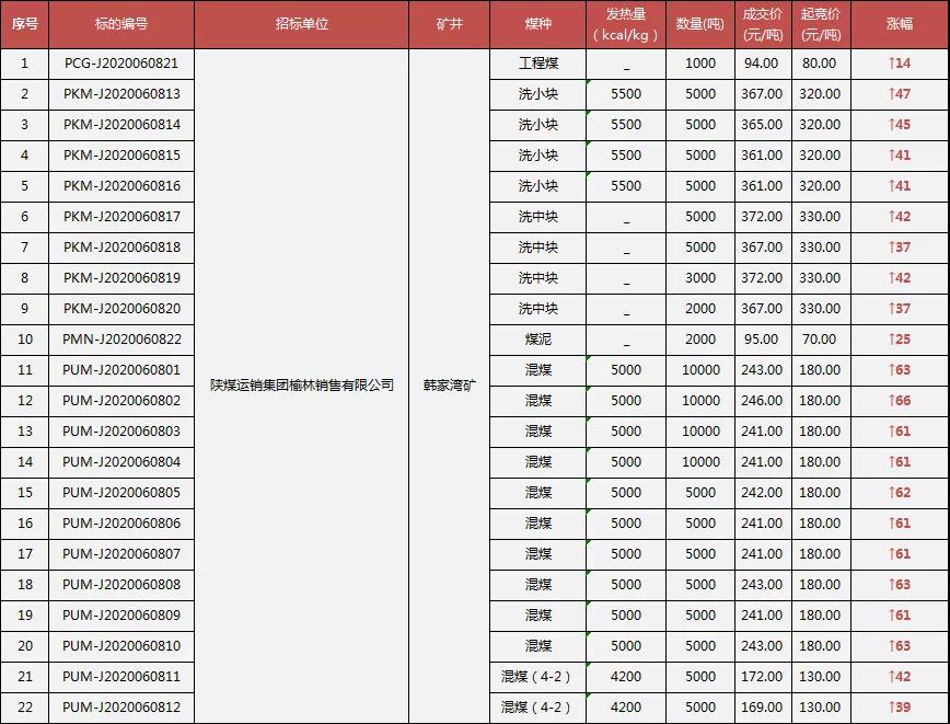 昨日,榆林地區陜煤旗下六大煤礦最新競價結果公布,成交價最高漲幅達到32元/噸。