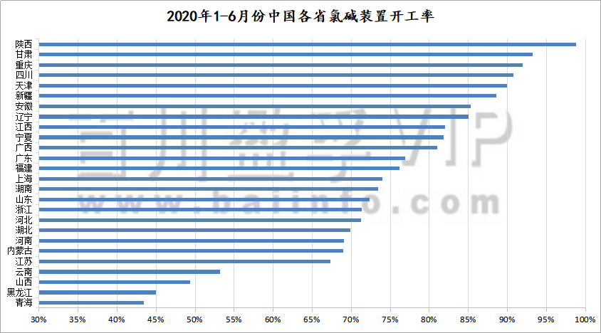我們分析,開工負荷下調的原因:2月份由于國際公共衛(wèi)生事件影響,道路運輸不暢,原材料到廠難、液氯出貨壓力大等問題制約了堿廠開工,其中最為明顯的是湖北省燒堿裝置開工率僅2-3成,2月份中國燒堿平均開工率跌至65.56%;4-6月份國際疫情影響發(fā)酵,大宗商品產(chǎn)業(yè)鏈上各品種的進出口貿(mào)易受挫,燒堿難以獨善其身,銷售與成本壓力使得行業(yè)整體開工率下滑。