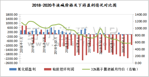 氧化鋁、粘膠短纖作為液堿的主力下游,整體用堿量占全部燒堿產(chǎn)量的38%-45%,其行業(yè)開工不佳制約液堿需求,同時其每輪訂價更引領全國燒堿走向。