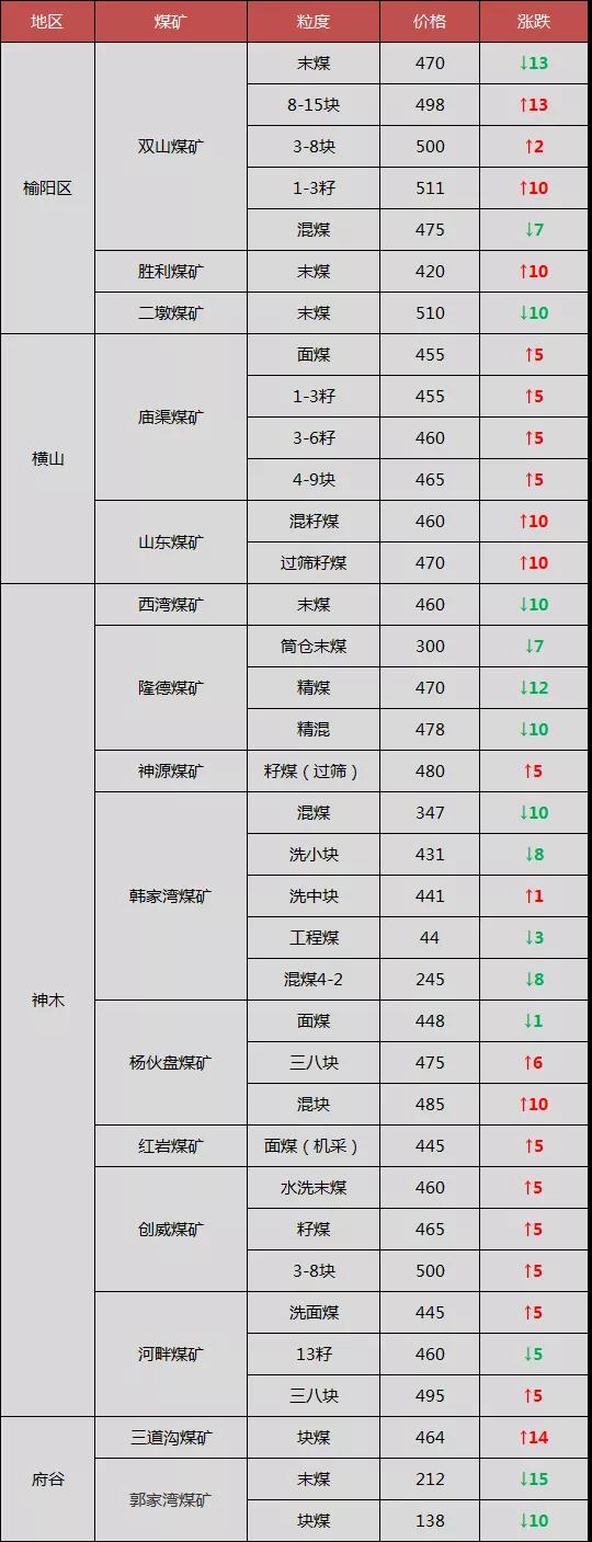 最新調(diào)價煤礦: