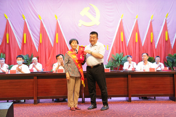 集團(tuán)公司董事長(zhǎng)代良云為具有50年黨齡的老黨員頒發(fā)獎(jiǎng)?wù)拢兄x她們充分發(fā)揮黨員模范帶頭作用,幾十年如一日對(duì)企業(yè)做出無(wú)私的奉獻(xiàn)。