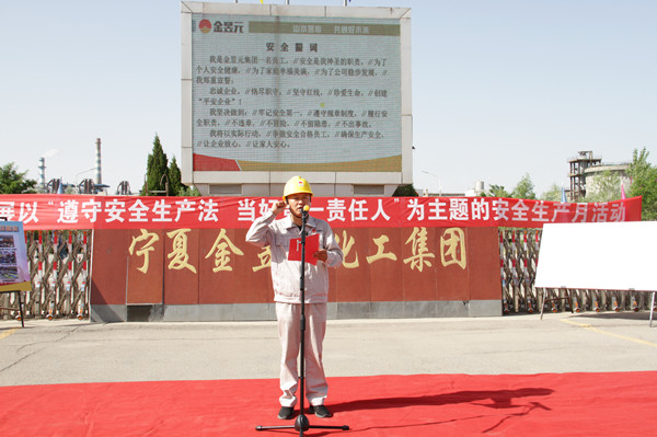 今年6月份是全國第21個(gè)“安全生產(chǎn)月”。今年的活動主題是“遵守安全生產(chǎn)法,當(dāng)好第一責(zé)任人”。6月1日,寧夏金昱元化工集團(tuán)股份有限公司分別在青銅峽片區(qū)和固原片區(qū)舉行“安全生產(chǎn)月”活動啟動儀式。