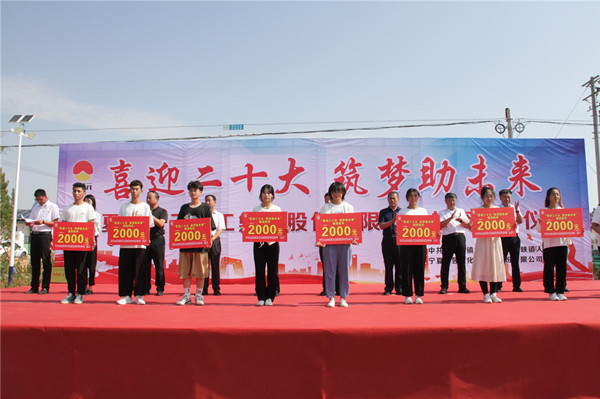 8月12日上午,金昱元化工集團到青銅峽市青銅峽鎮同進村開展貧困大學生捐資助學活動,捐助同進村、同心村54名即將步入高校的大學生。青銅峽市市委副書記、政法委書記徐明勇,青銅峽市常委、政府副市長王成,金昱元化工集團黨委書記、副董事長陳文泓,總裁喬冠榮,黨委副書記、工會主席尚興等參加了捐資助學儀式。捐資助學儀式由青銅峽鎮鎮長海軍主持。