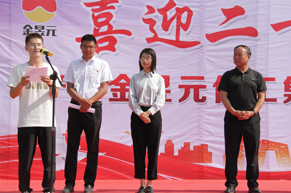 金昱元化工集團黨委書記、副董事長陳文泓發表講話,他代表寧夏金昱元化工集團向今年考取大學的學子們表示衷心的祝賀,同時獻上企業一份愛心。他說,金昱元化工集團自1991年成立以來,在社會各界的大力支持下,經過30多年發展,逐漸形成了以氯堿化工為龍頭、固廢資源化綜合利用、綠色清潔生產特征顯著的氯堿化工產業集群。多年來,公司積極履行社會責任,持續為社會公益事業和光彩事業做出貢獻,取得一定成效,并在社會產生良好聲譽。捐資助學是一項功在當代,利在千秋的事業,是中華民族傳統美德在新時代的發揚和傳承,我們會把助學活動一如繼往地開展下去。希望今天受到捐助的學子們不負韶華、勤奮學習,早日學成歸來,為家鄉建設做出貢獻;也希望學子們樹立遠大理想,做新時代青年的楷模,以優異的成績回報社會。屆時,金昱元化工集團也將張開雙臂,熱情歡迎大家入職金昱元,與金昱元攜手共進,共創好未來。