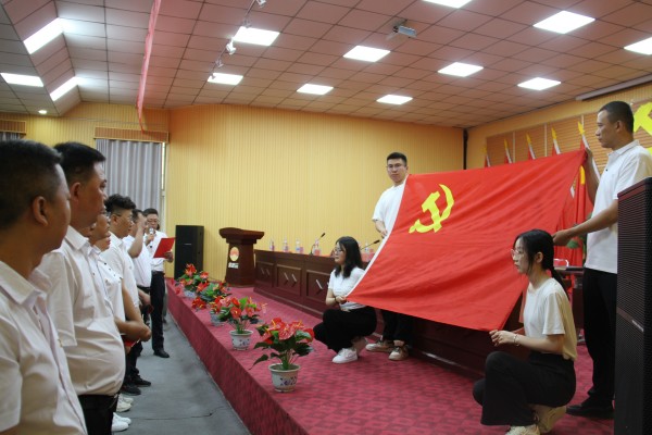 黨委領導班子為新黨員佩戴黨徽,頒發《黨章》。