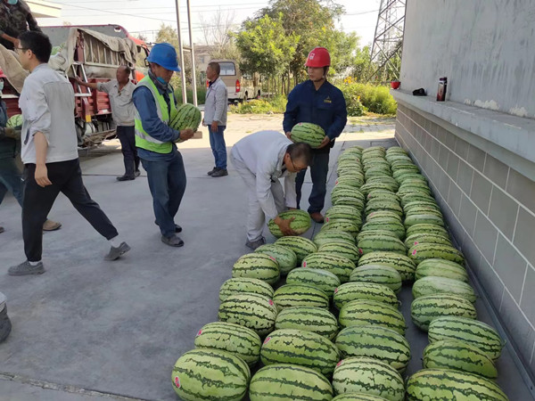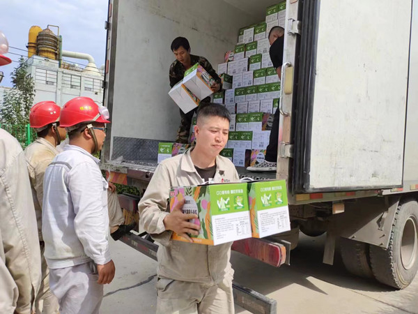 工作人員將防暑品送到生產一線,將濃濃關愛送到員工們手中,員工們在酷熱的夏天如飲甘泉,神清氣爽。