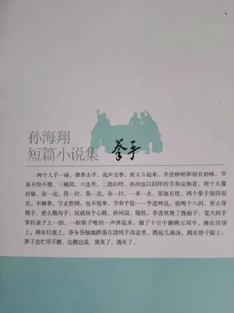 在文學(xué)日益式微的今天,仍有一些虔誠(chéng)的信徒堅(jiān)守在文化創(chuàng)作的金牧場(chǎng)。現(xiàn)供職于寧夏金昱元化工集團(tuán)有限公司的孫海翔,二十年如一日始終在青銅峽市這片熱土上堅(jiān)持著他的文學(xué)夢(mèng)想。歷時(shí)半年,短篇小說集《拳手》終于出版。這是青銅峽市作家孫海翔出版的第一部書,共收入28篇短篇小說。